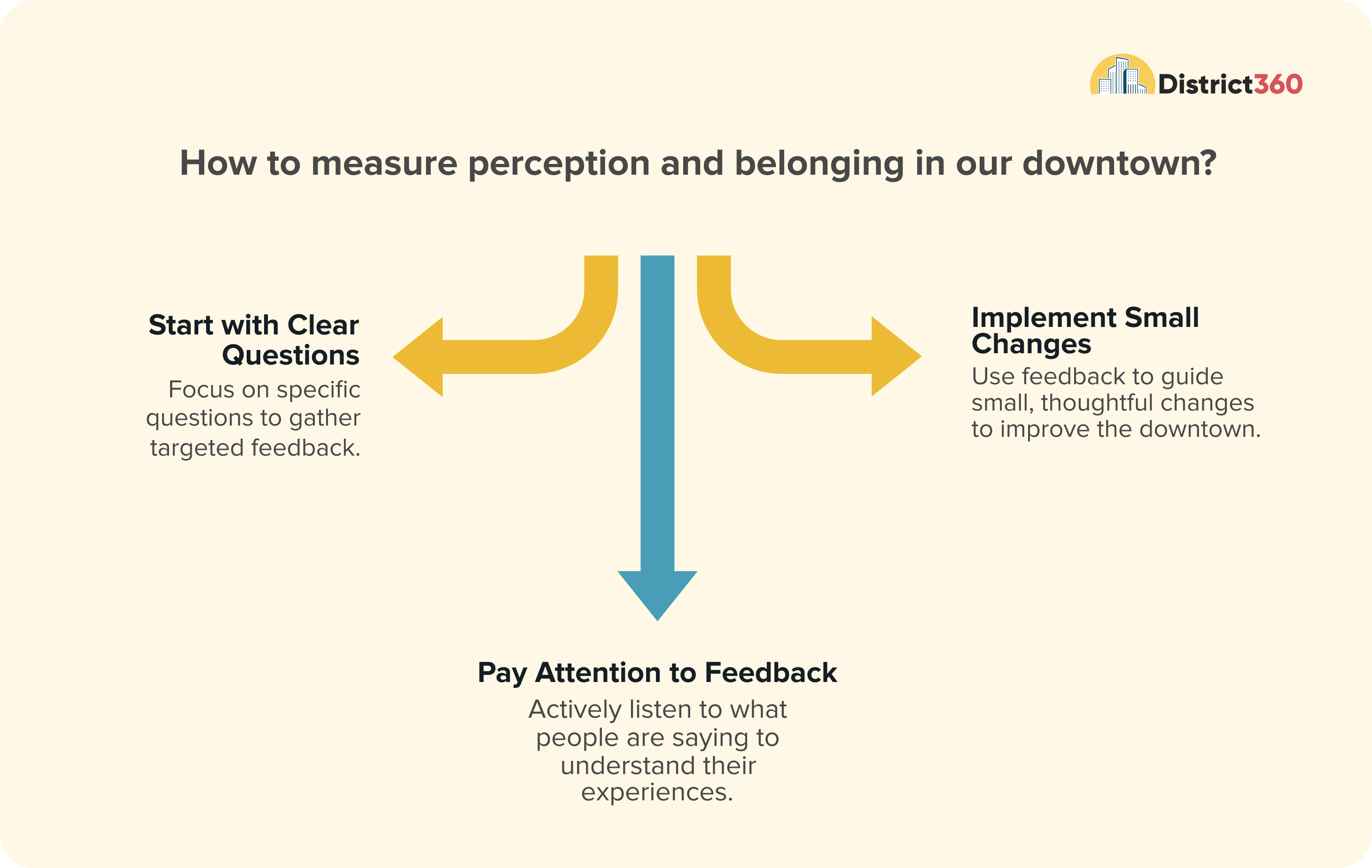 The most helpful approach seems to be starting with a few clear questions, paying close attention to what people are saying, and using that information to guide small, thoughtful changes. Over time, these efforts begin to build a deeper understanding of how people experience your downtown and what matters most to them.